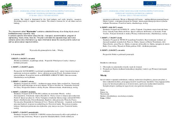 The document called “Wycieczka” contains a detailed itinerary of an 8-day trip to one of