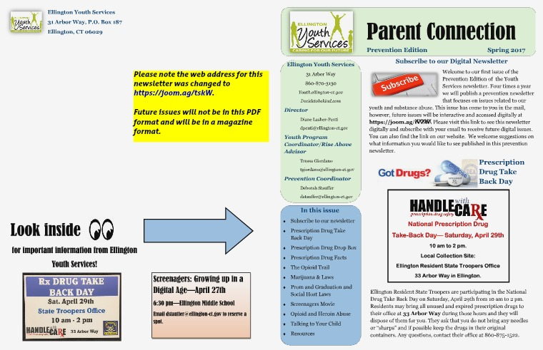 Ellington Youth Services Prevention Newsletter Prevention Newsletter Spring 2017