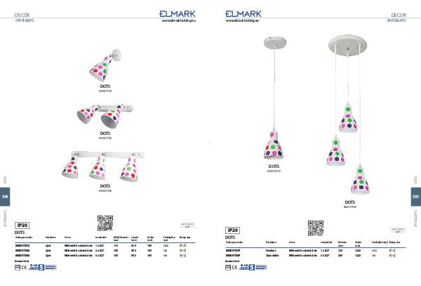 955DOTS1S Spot White with colored dots 1 x E27 110 205 180 1/20