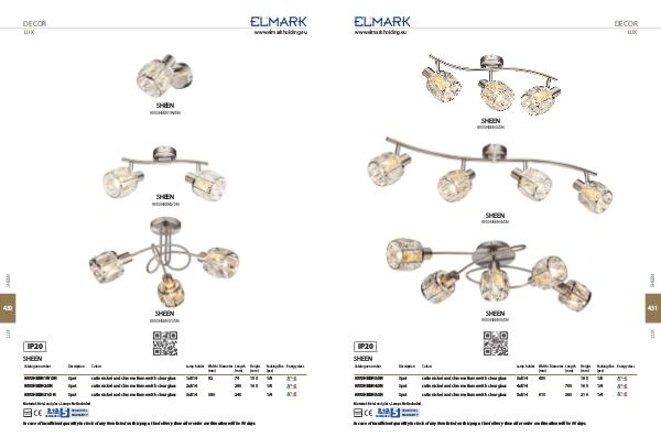 955SHEEN3/SN Spot satin nickel and chrome frame with clear glass 3xE14 450 955SHEEN4/SN Spot satin nickel and chrome frame with clear glass 4xE14 955SHEEN5/SN Spot satin nickel and chrome frame with clear glass 5xE14