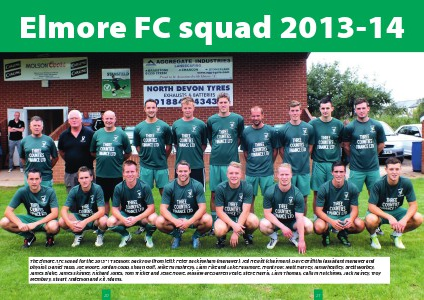 The Elmore AFC squad for the 2013-14 season: Back row (from left): Peter Buckingham (manager), Jed He