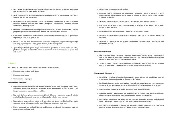 • Sensibilitat i interès per l ' escolta, l ' observació i l ' exploració de les possibilitats sonores, simbòliques, cinètiques i plàstiques d ' elements de l ' entorn.