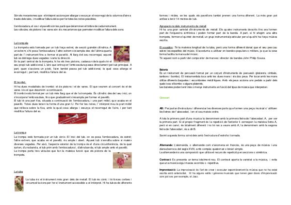 La tuba és el instrument més gran dels de metall. El tub és cònic i té forces corbes i