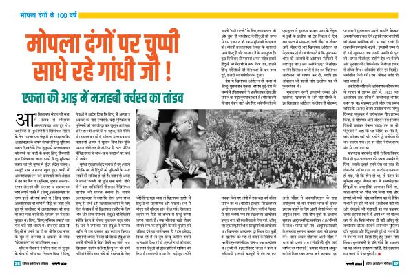 देश मे खिलाफत आंदोलन की वजह से ' हिनदू-मुसलमान एकता ' कायम हुई-देश के वामपंथी इतिहासकारों ने भ्रम फैलाकर देश और समाज का बड़ा नुकसान किया है । मोपला दंगों में जान गंवाने वाले और फिर धर्म परिवर्तन के