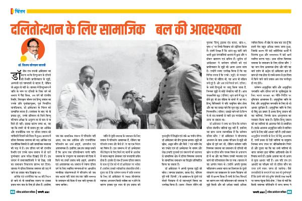 भीम राव रामजी आंबेडकर का कहना था कि हिनदुसथान के दलितों की ससथति प्राचीनकाल के शूद्रों , अनतयिों एवं चाणडािों से बदतर है , लेकिन वो अछूत तो नहीं थे । वासिव में हिनदुसथान में जाति के नाम पर दलितों के जिस वर्ग को समाज में पैदा किया , उस वर्ग की दयनीय ससथति , तिरसकृि जीवन एवं हिनदू समाज का उनके प्रति पूवा्षग्हयुकि , पूर्व निर्धारित मानसिकता , डलॉ आंबेडकर के चिंतन को सतयातपि करता है । सविंत्िा के बाद जो भी प्रयास हुए , उनके प्रतिफल तो मिले किनिु परिणाम अपेक्षा के अनुरूप या तो कम थे या मिले ही नहीं । इसका कारण सप्ट था , वह यह कि हमारे जो भी प्रयास हुए वह आर्थिक और राजनीतिक सिर पर दलित समाज की भागीदारी दिलाने की दिशा में हुआ । वासिव में दलित विषयक समसया की जड़ आर्थिक एवं राजनीतिक विषयों से आगे सामाजिक वयवसथा की जड़ में है । हम दलित वर्ग की दयनीय ससथति एवं उनके साथ समाज में हो रहरे दुवय्षवहार आज परोक्ष दिखाई देते हैं । इस सनदभ्ष में समाजशाससत्यों ने जो देखा , उसी का समाधान निकलना प्रारमभ कर दिया । वासिव में दलित विषयक समसया की जड़ में जाने का प्रयास मात् दिखावा था ।