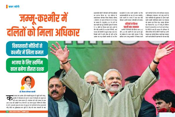 प्रधानमंत्ी मकोदी ने परिवर्तन की जिस प्रवरिया का प्रारमभ किया था , उस प्रवरिया के सकारातमक परिणाम जिला विकास परिषद ( डीडीसी ) के चुनाव परिणाम के रूप में देखा जा सकता है । अनुचछेद-370 के हटने के बाद पहली बार हुए डीडीसी चुनाव में भाजपा ने 74 सीटों पर विजय प्रा्त की । इनमें से तीन सीट कशमीर के उस क्ेत् में मिली , जहां भाजपा कको दशकों से अछूत समझा जाता था । विपक्ी दलों ने कभी सकोचा ही नहीं था कि आतंक का गढ़ दवक्णी कशमीर हको या फिर