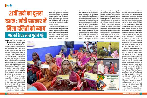 विकास के जिन पैमानों से उनहें सालों तक वंचित रखा गया , वह अब उनहें भी नसीब हको सकेगा । और ऐसा हुआ भी । पदूि्स प्रधानमंत्ी अटल बिहारी बाजपेई के बाद देश में फिर से बनी भाजपा की नयी सरकार के मुखिया माने प्रधानमंत्ी नरेंद्र मकोदी ने विकास के लिए अपना जको रकोि मैप सामने रखा था , उस रकोि मैप का परिणाम छह वर्ष बाद पदूरे देश की बदल रही तसिीर के रूप में देखा जा सकता है । देश की दलित औऱ समाज के अंतिम छकोर पर खड़ी जनता के लिए जको यकोजनाये लायी गयी , उनमें मुखय रूप से सिचछ भारत अभियान , प्रधानमंत्ी जन धन यकोजना , आधार और मकोबाइल , बेटी बचाओ-बेटी पढ़ाओ यकोजना , अटल पेंशन यकोजना , कम खर्च पर दुर्घटना एवं जीवन बीमा