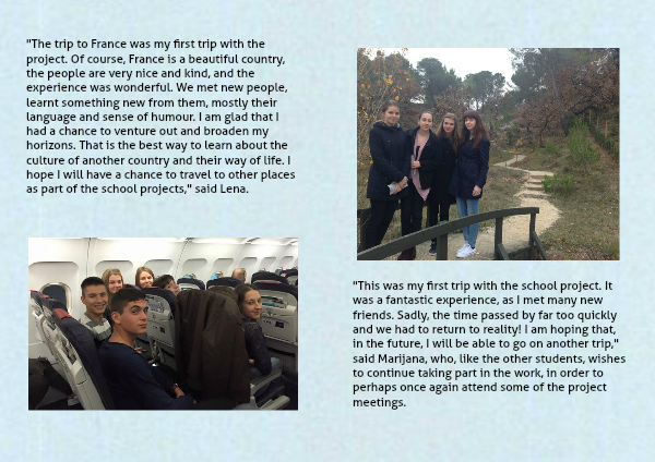 "This was my first trip with the school project. It was a fantastic experience, as I met many new friends. Sadly, the time passed by far too quickly and we had to return to reality! I am hoping that, in the future, I will be able to go on another trip," said Marijana, who, like the other students, wishes to continue taking part in the work, in order to perhaps once again attend some of the project meetings.