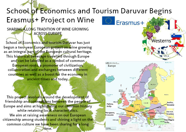 School of Economics and tourism Daruvar has just begun a two-year European project on wine growing as an integral part of the European cultural heritage. This historical beverage travelled through Europe and can be labelled as a symbol of common European roots, a promoter of civilization, collaboration and exchanges between different countries as well as a boost for the economy in ancient times and today.