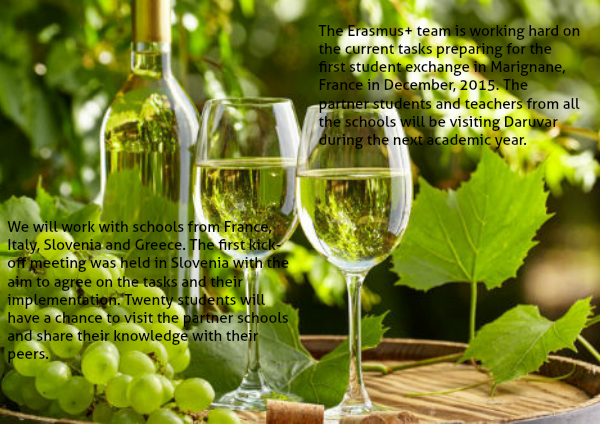 The Erasmus+ team is working hard on the current tasks preparing for the first student exchange in Marignane, France in December, 2015. The partner students and teachers from all the schools will be visiting Daruvar during the next academic year.
