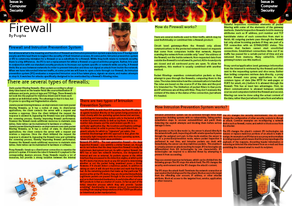 Not all know what is the meaning and function of firewall and intrusion prevention system especially non-IT background people and this lead them to neglect the security of their internet accesses. At some point, intrusion prevention system or IPS is commonly mistaken for a firewall or as a substitute for a firewall. While they both relate to network security, there is a big difference. An IPS is not a replacement for either a firewall or a good antivirus program. Rather, it is used in conjunction with our standard security products to increase our system specific or network-wide security. A firewall limits the access between networks in order to prevent intrusion and does not signal an attack from inside the network. When we have inbounded Internet traffic, at some point we will have to open a hole through our firewall. An intrusion prevention system (IPS) evaluates a suspected intrusion once it has taken place, signals an alarm, and makes attempts to stop it. It watches for attacks specifically designed to be overlooked by a firewall’s filtering rules.