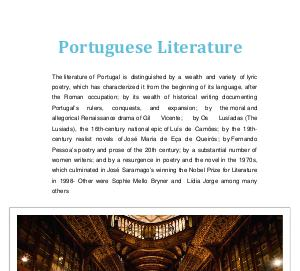 The literature of Portugal is distinguished by a wealth and variety of lyric