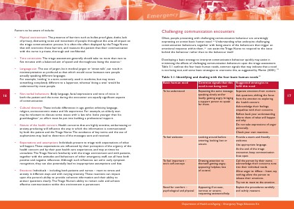 • Emotions: Individuals – including both patients and nurses – react to stress and anxiety in different ways and with varying intensity. These reactions can impact upon the person’ s ability to provide coherent information and their ability to answer questions clearly. The Triage Nurse’ s ability to remain calm and achieve effective communication within this environment is paramount.