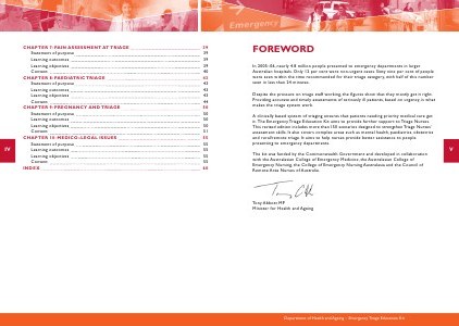 A clinically based system of triaging ensures that patients needing priority medical care get it. The Emergency Triage Education Kit aims to provide further support to Triage Nurses. This revised edition includes more than 150 scenarios designed to strengthen Triage Nurses’ assessment skills. It also covers complex areas such as mental health, paediatrics, obstetrics and rural / remote triage. It aims to help nurses provide better assistance to people presenting to emergency departments.