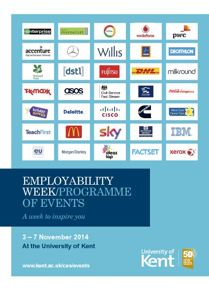 EMPLOYABILITY WEEK/PROGRAMME OF EVENTS A week to inspire you 3 – 7 November 2014 At the University of Kent www.kent.ac.uk/ces/events