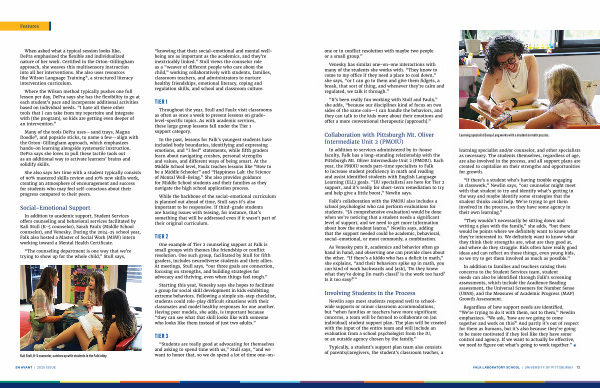 Years ago, seventh- and eighth-grade students selected the spring musical from a list of options provided by their teachers, but today, their involvement in the decision process is even deeper. In the fall, students select shows, research them, and create presentations for Stephanie Bohanan’ s music class explaining why their show is a good choice for Falk’ s theater program. An essential aspect of the project, Esswein explains, is“ they have to think about what works for the community and present that as part of their argument and research process. With our program, we can’ t do a show that has one hundred people in it, but we also probably don’ t want to do a show that has four featured parts and nothing else.”
