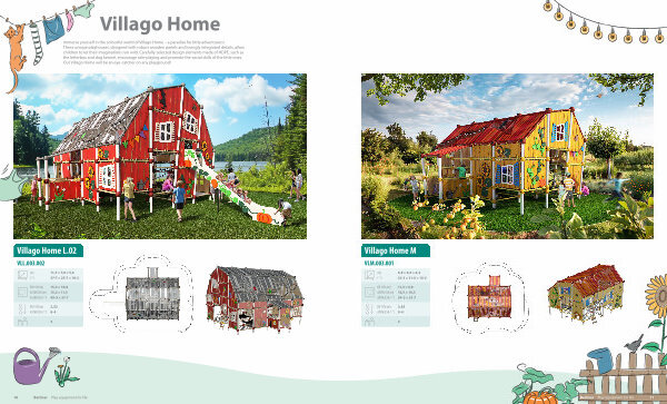 Villago LaGrange – the versatile play barn – transports children to an idyllic farm where they can not only have lots of fun playing but also develop their diverse skills. These rustic playhouses are clad with bamboo panels, providing a high-quality and natural design. To give the playhouses the look of a real barn and create more transparency, the bamboo is combined with our innovative transparent Joe’ s Grid.