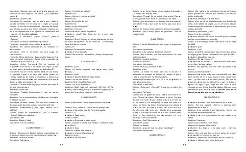 Spectatore: Lo siento, pero ha dicho el título al revés. Galeno: Eso me pareció. ¿ Títeres a espectadores? ¿ Espectadores a títeres? Burattino: Creo recordarlo perfectamente. Noche tras noche hacemos este espectáculo. Spectatore: Son los espectadores los que matan a los títeres. Burattino: Viceversa. Galeno: Que ya me han confundido. Burattino: Pregunten a Fiorinetta. Spectatore:( La levanta y la deja caer.) ¡ Continúa desmayada! Galeno: ¿ No será que hoy no tiene ganas de actuar? Suele suceder en los mejores teatros. Burattino: ¡ Anímela! Es una cuestión de vida o muerte. Spectatore: Más de muerte que de lo otro.
