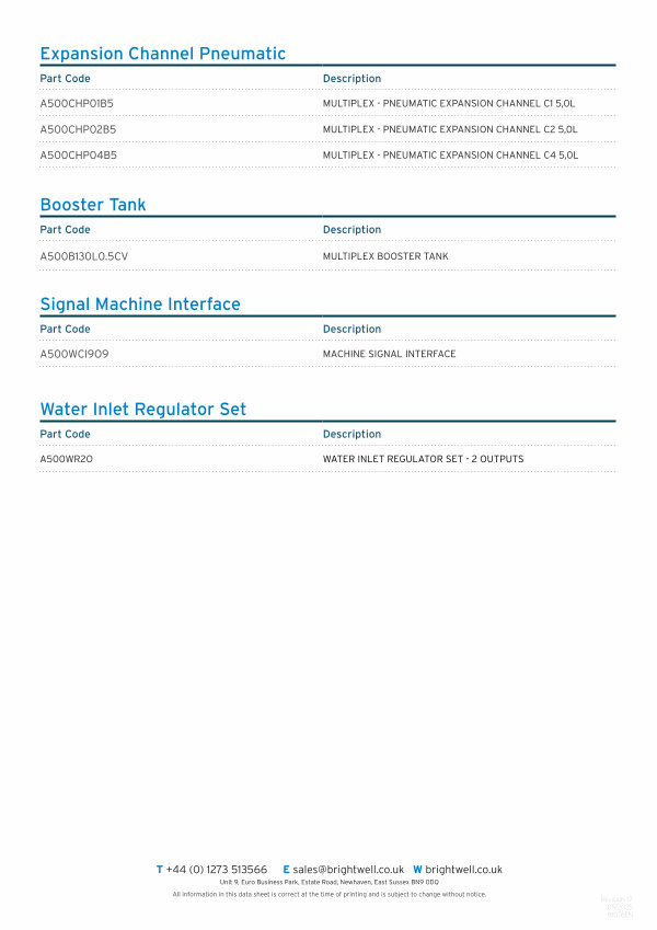T + 44( 0) 1273 513566 E sales @ brightwell. co. uk W brightwell. co. uk Unit 9, Euro Business Park, Estate Road, Newhaven, East Sussex BN9 0DQ All information in this data sheet is correct at the time of printing and is subject to change without notice.