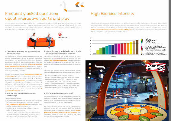 The World ’ s first interactive play set was launched by Yalp in 2006 . Meanwhile , interactives such as the Yalp Sona have been placed in over 300 locations worldwide , and have won a great deal of awards . And we ’ re not done developing by a long shot ! Our product portfolio will only broaden and deepen in the coming years .