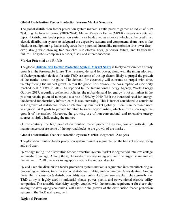 The global Distribution Feeder Protection System Market Share is likely to experience a sturdy