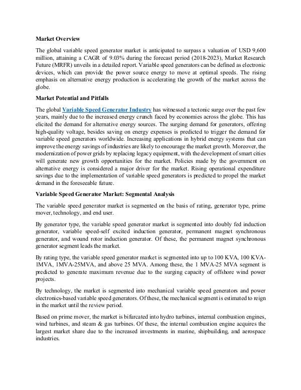 Future (MRFR) unveils in a detailed report. Variable speed generators can be defined as electronic
