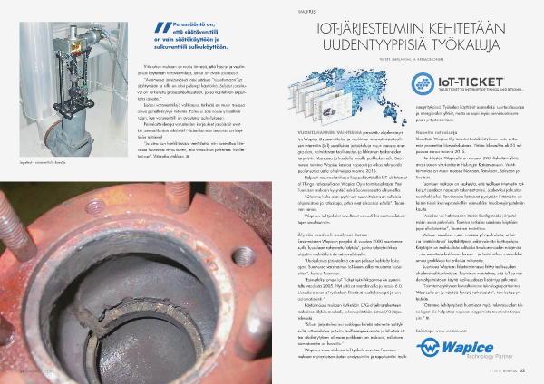 VUOSITUHANNEN VAIHTEESSA perustettu ohjelmistoyritys Wapice Oy suunnittelee ja markkinoi innovatiivisia teollisen internetin( IoT) sovelluksia ja työkaluja muun muassa energia-alan, valmistavan teollisuuden ja liikkuvien työkoneiden tarpeisiin. Vaasassa ja kuudella muulla paikkakunnalla Suomessa toimiva Wapice kasvaa nopeasti ja aikoo rekrytoida puolensataa uutta ohjelmoijaa vuonna 2016.
