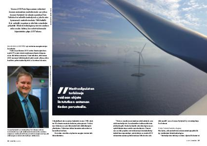 ”Puisto on maailman ensimmäinen jääolosuhteisiin suunniteltu merituulipuisto. Sen rakenteilta vaaditaan ehdotonta talla merellä”, sanoo Suomen Hyötytuuli Oy:n toimitusjohtaja Toni Sulameri. jäänkestävyyttä. Hanke hyödyntää uutta teknologiaa ja synnyttää liiketoimintaa vaativiin meriolosuhteisiin. Olennai- Uutta lintututkateknologiaa nen osa tätä projektia ovat teräskuoriset, kiviaineksella täy- Hän kertoo, että merituulivoiman demonstraatioprojektiin liit- tettävät kasuuni­perustukset, jonka kaltaisia on testattu 2010 tyy ainutlaatuista lintututkateknologiaa. rakennuttamassamme pilottivoimalassa Tahkoluodon edus- ”Merituulipuiston turbiineja voidaan ohjata eli hidastaa tai 3 / 2016  enertec 49
