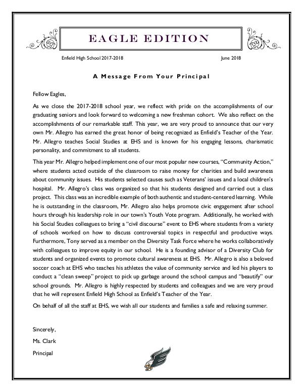 Enfield High Newsletters - Eagle Edition EHS Newsletter June 2018 FINAL