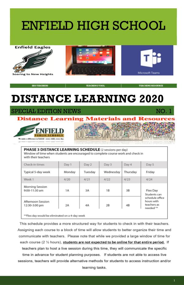 ENFIELD HIGH SCHOOL EHS TEACHERS TEACHING TOOL TEACHING RESOURCE DISTANCE LEARNING 2020 SPECIAL EDITION NEWS NO. 1 1