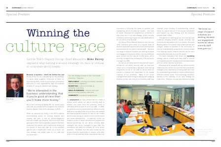Special Feature important in removing the sense of isolation and highlighting ethnic minority role models. Our suite of career development programmes continues to play a key role in our race strategy, which now also includes a mentoring programme and a staff network for our ethnic minority staff.