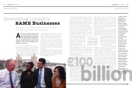 In 2005, the LDA launched the BAME Business Action Plan to meet the barriers to business growth faced by the capital’ s BAMEowned enterprises. Following research the LDA found that BAMEowned businesses encounter disproportionate barriers to their development and growth of their businesses. As a result of the recommendations within the research report, the action plan focused on six areas- business support and advice, business finance, public and private sector contracts, business premises, international partnerships and trade development and information data and research.