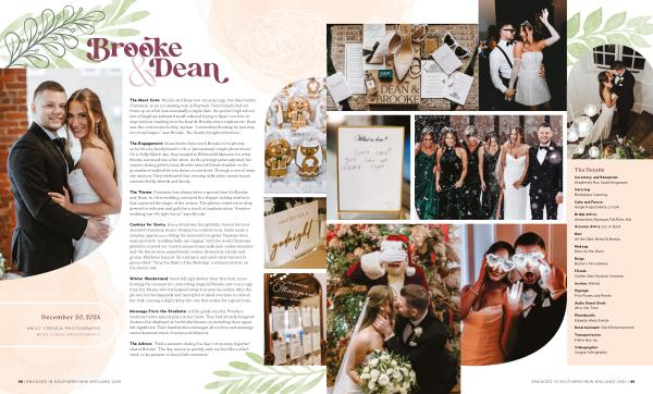 The Engagement: Dean knows how much Brooke loves photos, so he hired a family friend to do a“ promotional couple photo shoot.” On a chilly March day, they headed to Blithewold Mansion for what Brooke assumed was a fun shoot. As the photographer adjusted her camera during golden hour, Brooke noticed Dean’ s shadow on the groundand realized he was down on one knee. Through a sea of tears, she said yes. They celebrated that evening at Brooke’ s mom’ s house surrounded by friends and family.