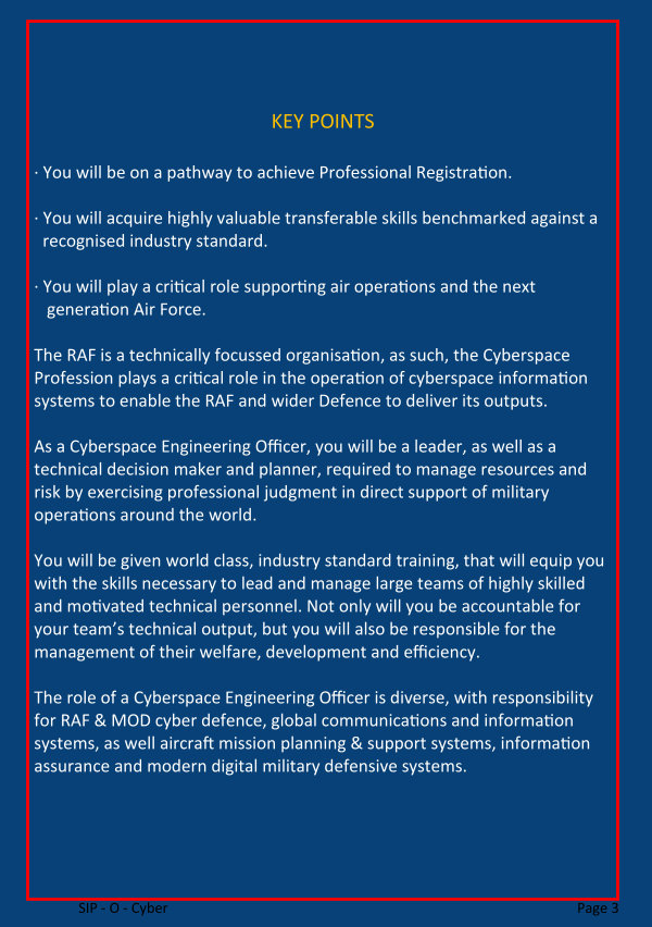 The RAF is a technically focussed organisation, as such, the Cyberspace Profession plays a critical role in the operation of cyberspace information systems to enable the RAF and wider Defence to deliver its outputs.