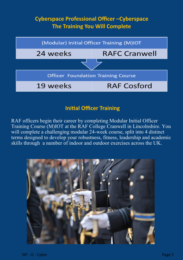 RAF officers begin their career by completing Modular Initial Officer Training Course( M) IOT at the RAF College Cranwell in Lincolnshire. You will complete a challenging modular 24-week course, split into 4 distinct terms designed to develop your robustness, fitness, leadership and academic skills through a number of indoor and outdoor exercises across the UK.