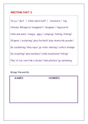 Do sculpting/ play marbles/ climb mountains/ hiking/