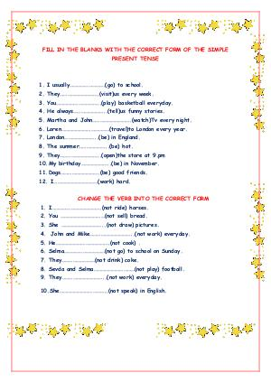 FILL IN THE BLANKS WITH THE CORRECT FORM OF THE SIMPLE