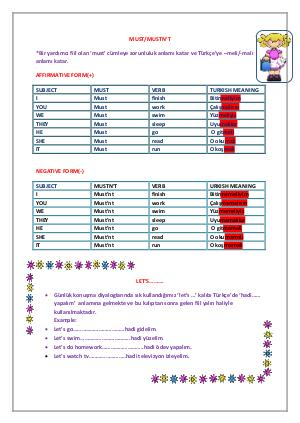 *Bir yardımcı fiil olan ‘must’ cümleye zorunluluk anlamı katar ve Türkçe’ye –meli/-malı