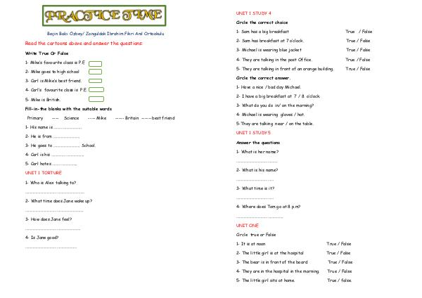 2- Sam has breakfast at 7 o’clock. True / False