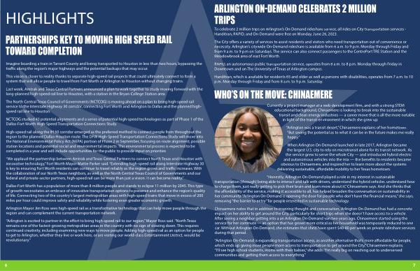 “ Arlington is excited to partner in the effort to bring high-speed rail to our region ,” Mayor Ross said . “ North Texas remains one of the fastest-growing metropolitan areas in the country with no sign of slowing down . This requires continued creativity , including examining new ways to move people . Adding high-speed rail as an option for people to get to Arlington , whether they live or work here , or are visiting our world-class Entertainment District , would be revolutionary .”