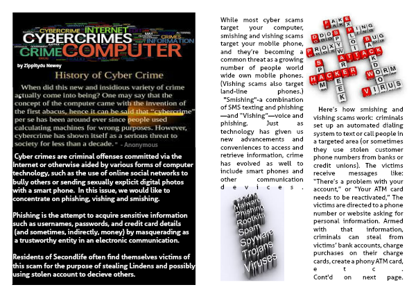 Cyber crimes are criminal offenses committed via the Internet or otherwise aided by various forms of computer technology, such as the use of online social networks to bully others or sending sexually explicit digital photos with a smart phone. In this issue, we would like to concentrate on phishing, vishing and smishing.