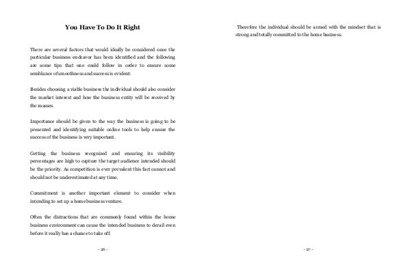 Besides choosing a viable business the individual should also consider