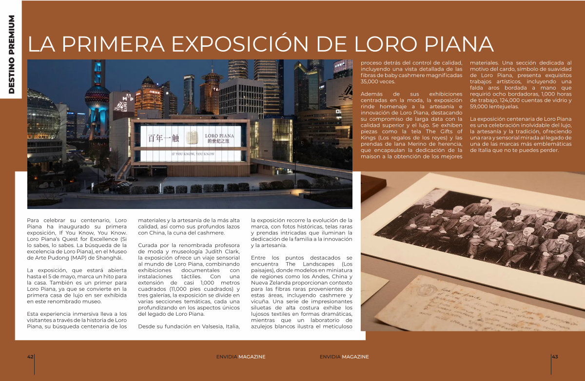 La exposición centenaria de Loro Piana es una celebración inolvidable del lujo, la artesanía y la tradición, ofreciendo una rara y sensorial mirada al legado de una de las marcas más emblemáticas de Italia que no te puedes perder. orre la evolución de la s históricas, telas raras adas que iluminan la familia a la innovación