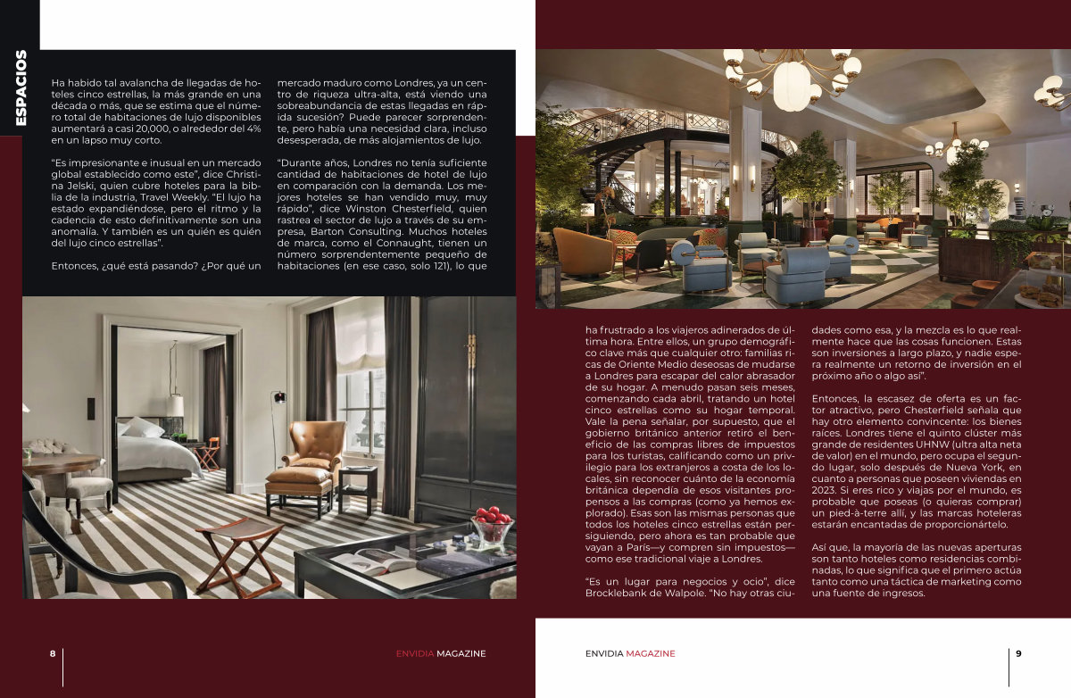 Entonces, la escasez de oferta es un factor atractivo, pero Chesterfield señala que hay otro elemento convincente: los bienes raíces. Londres tiene el quinto clúster más grande de residentes UHNW( ultra alta neta de valor) en el mundo, pero ocupa el segundo lugar, solo después de Nueva York, en cuanto a personas que poseen viviendas en 2023. Si eres rico y viajas por el mundo, es probable que poseas( o quieras comprar) un pied-à-terre allí, y las marcas hoteleras estarán encantadas de proporcionártelo.