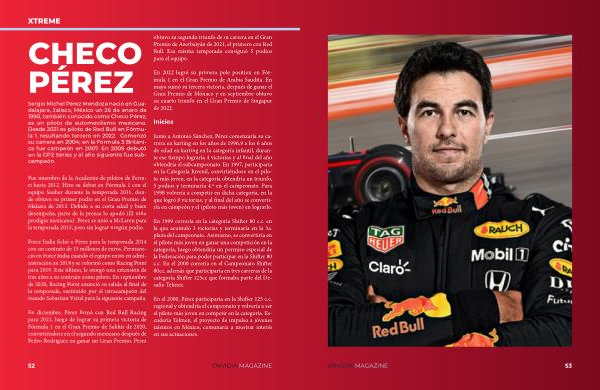 Sergio Michel Pérez Mendoza nació en Guadalajara , Jalisco , México un 26 de enero de 1990 , también conocido como Checo Pérez , es un piloto de automovilismo mexicano . Desde 2021 es piloto de Red Bull en Fórmula 1 , resultando tercero en 2022 . Comenzó su carrera en 2004 ; en la Fórmula 3 Británica fue campeón en 2007 . En 2009 debutó en la GP2 Series y al año siguiente fue subcampeón .