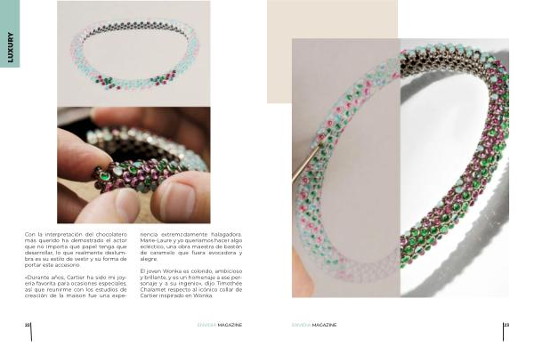 El joven Wonka es colorido , ambicioso y brillante , y es un homenaje a ese personaje y a su ingenio », dijo Timothée Chalamet respecto al icónico collar de Cartier inspirado en Wonka .
