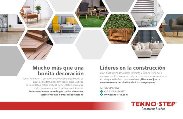 usan pisos laminados , pastos sintéticos y follajes Tekno-Step en sus obras . Contamos con más de 3 mil distribuidores en todo el país que están listos para atenderte . ¡ Llámanos ! juntos encontraremos la solución ideal para tu proyecto .