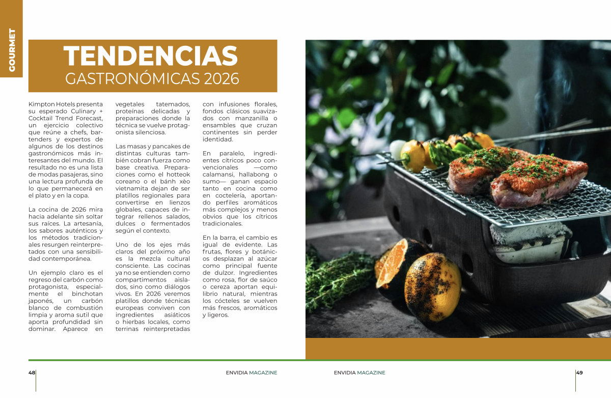 Kimpton Hotels presenta su esperado Culinary + Cocktail Trend Forecast, un ejercicio colectivo que reúne a chefs, bartenders y expertos de algunos de los destinos gastronómicos más interesantes del mundo. El resultado no es una lista de modas pasajeras, sino una lectura profunda de lo que permanecerá en el plato y en la copa.