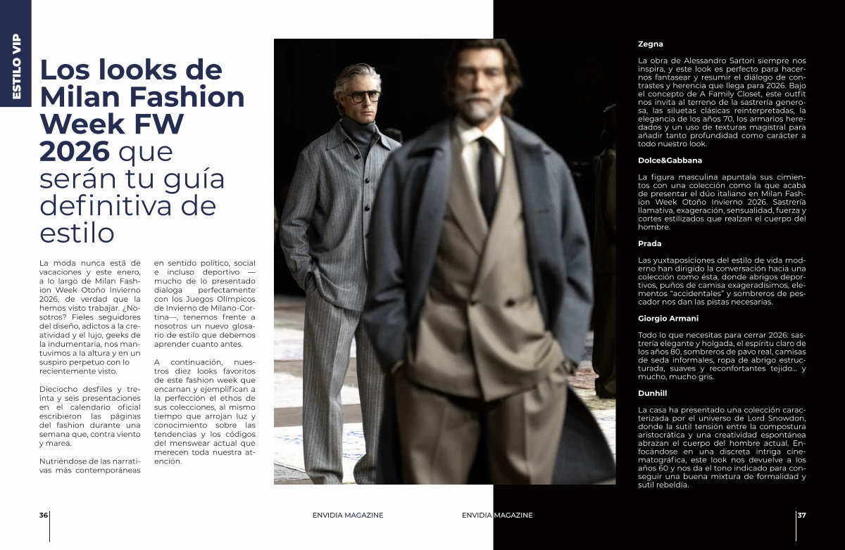 La moda nunca está de vacaciones y este enero, a lo largo de Milan Fashion Week Otoño Invierno 2026, de verdad que la hemos visto trabajar. ¿ Nosotros? Fieles seguidores del diseño, adictos a la creatividad y el lujo, geeks de la indumentaria, nos mantuvimos a la altura y en un suspiro perpetuo con lo recientemente visto.