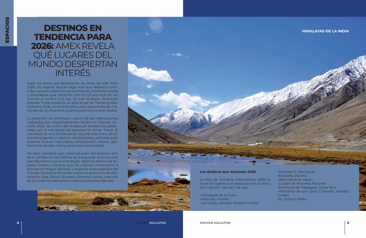 Viajar es ahora una declaración de estilo de vida. Para 2026, los viajeros buscan algo más que destinos conocidos: quieren experiencias auténticas, hotelería curada y propuestas que conecten con la cultura local sin renunciar al confort y el lujo. En ese contexto, American Express Travel presentó su lista anual de Trending Destinations 2026, un termómetro clave para entender hacia dónde se mueve el turismo premium a nivel global.